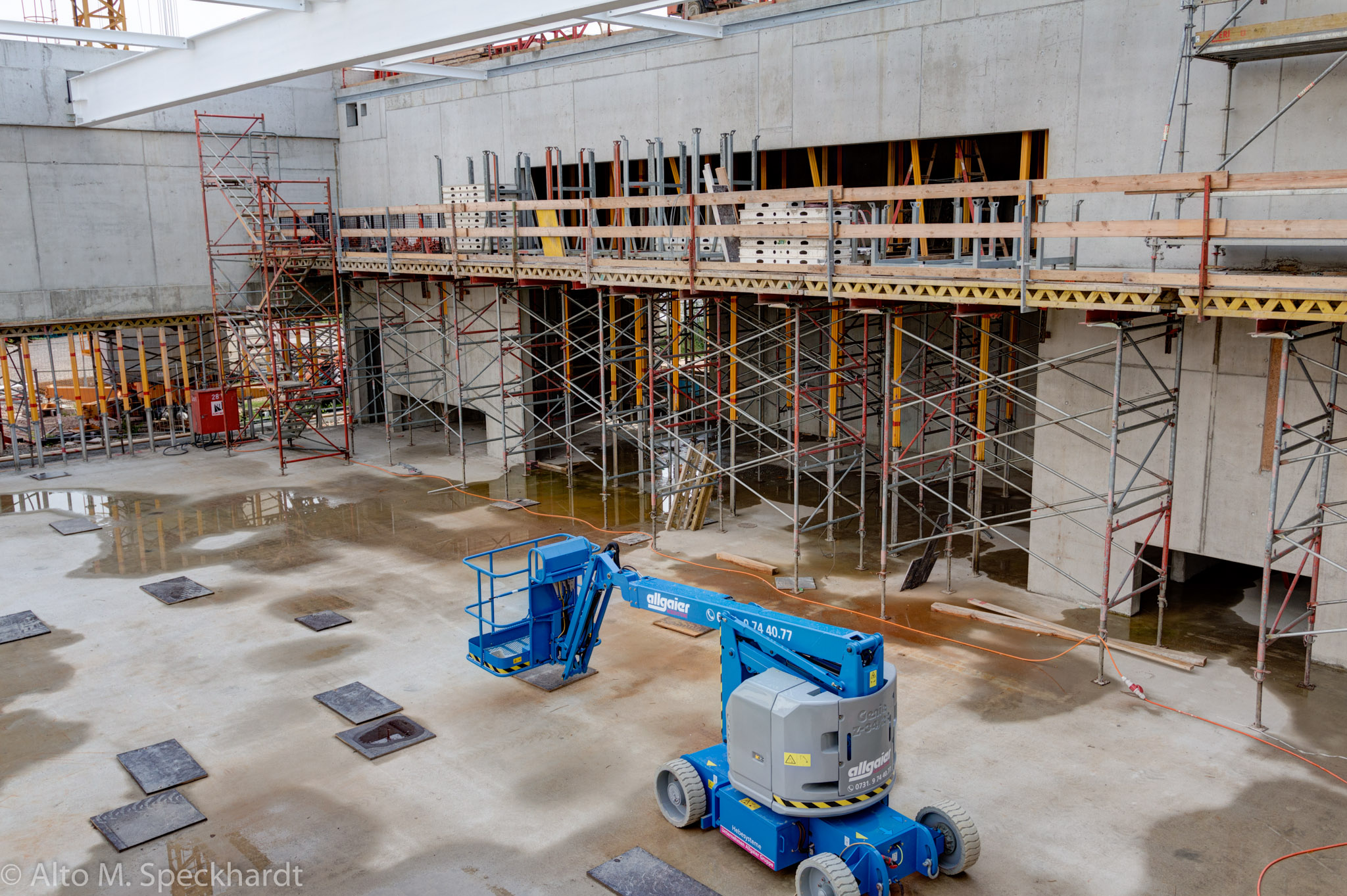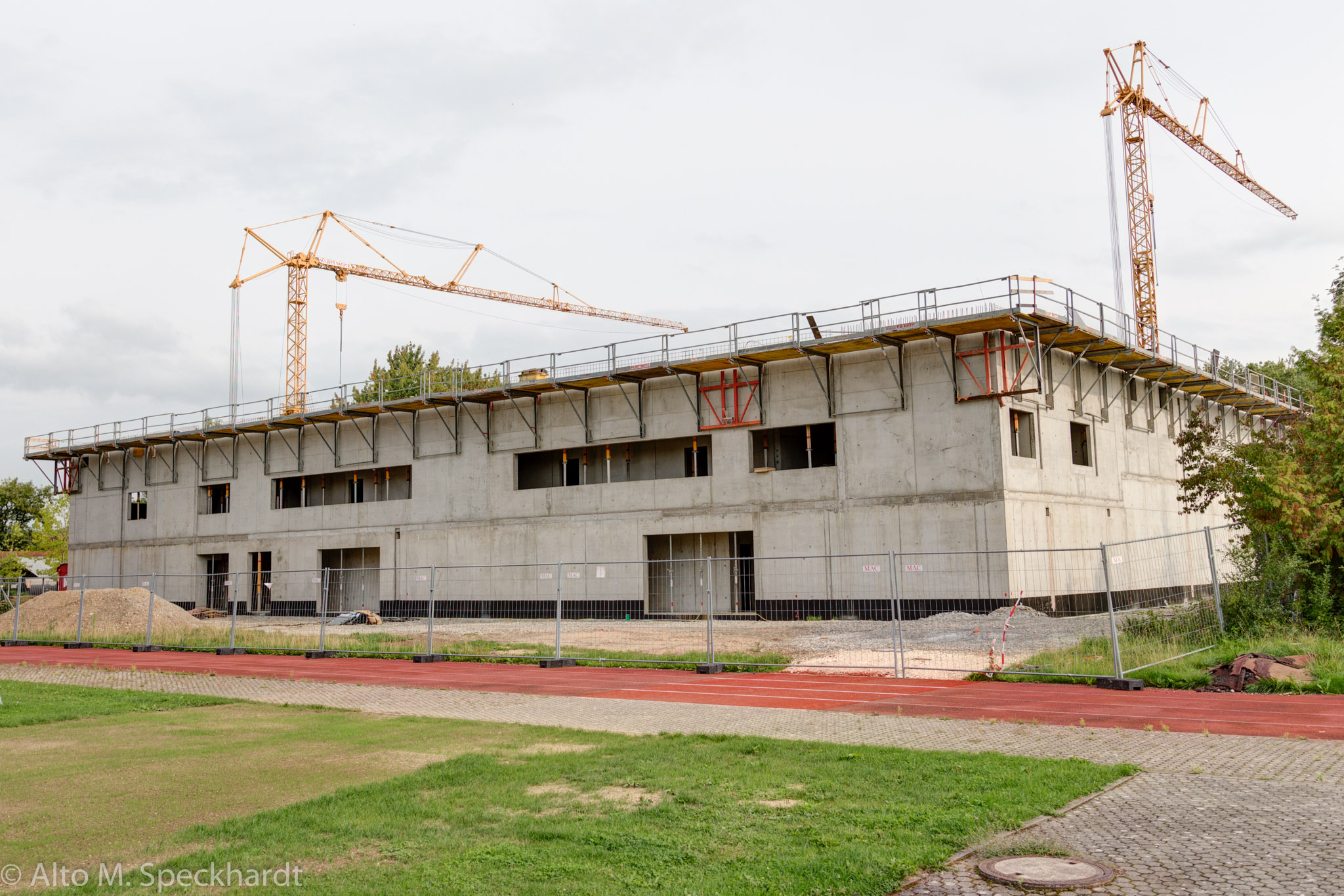 Die neue Mehrzweckhalle Weißenhorn (neben der bestehenden Realschule) nähert sich ihrer Fertigstellung. Noch im September war der Rohbau weniger attraktiv, wenn auch übersichtlicher. Es wird interessant sein, die damaligen Blickwinkel mit dem Endergebnis zu vergleichen.